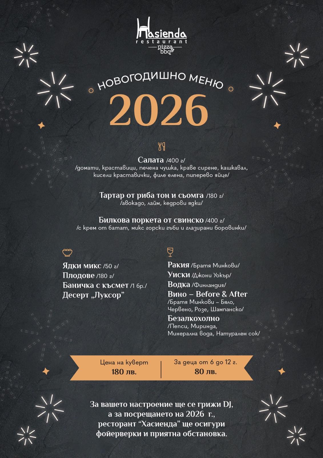 РЕСТОРАНТ „ХАСИЕНДА“ ЩЕ ОСИГУРИ ФОЙЕРВЕРКИ И ПРИЯТНА ОБСТАНОВКА.